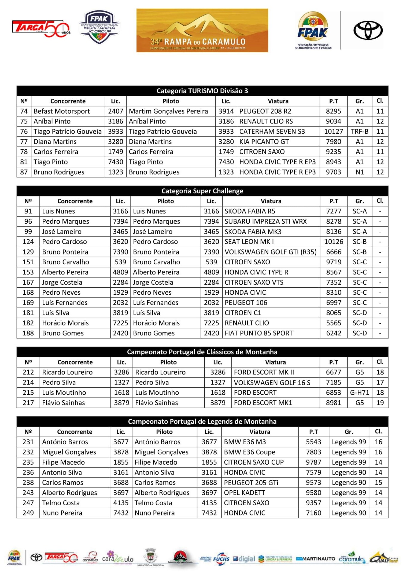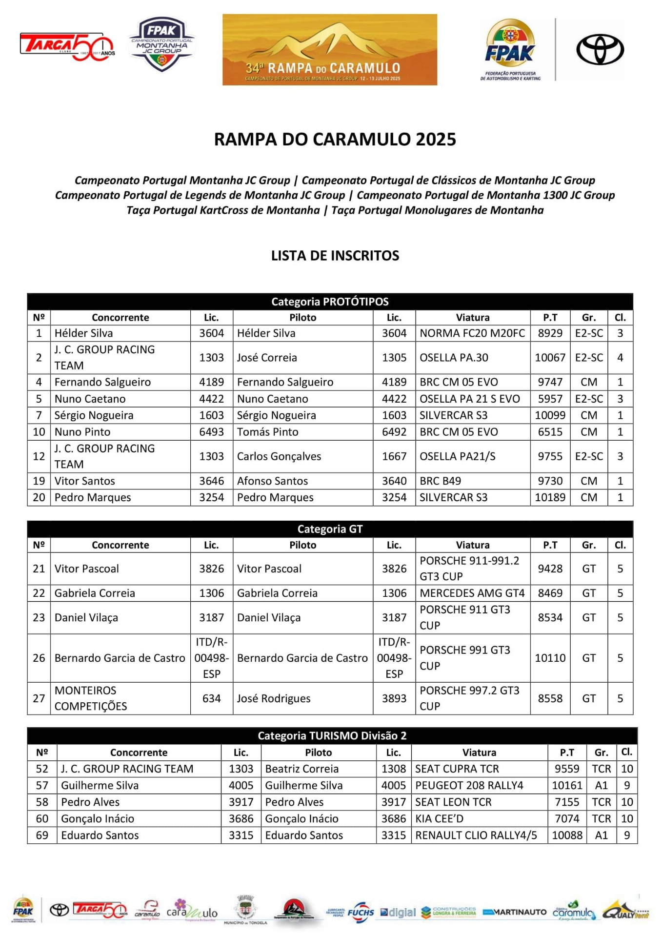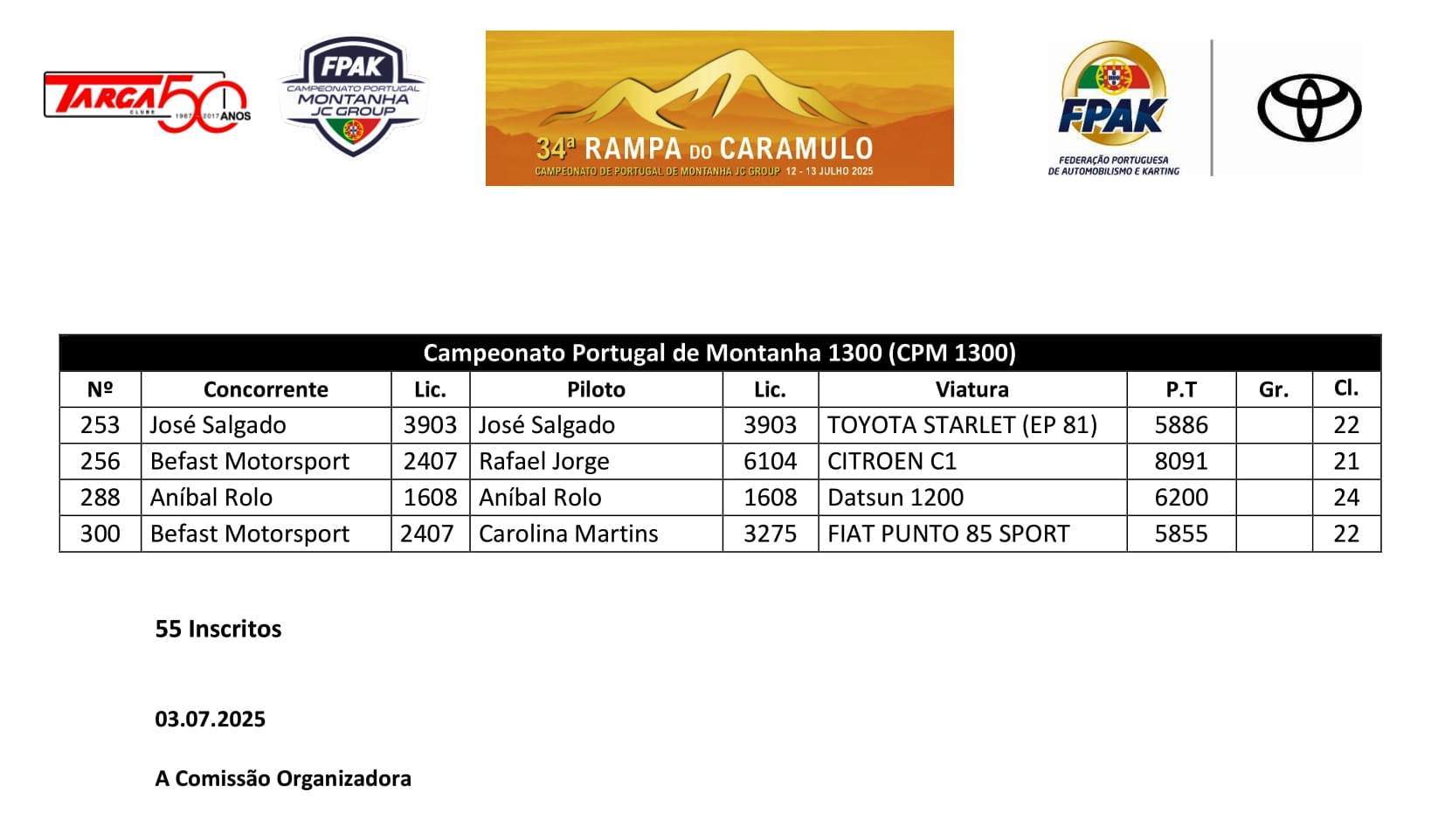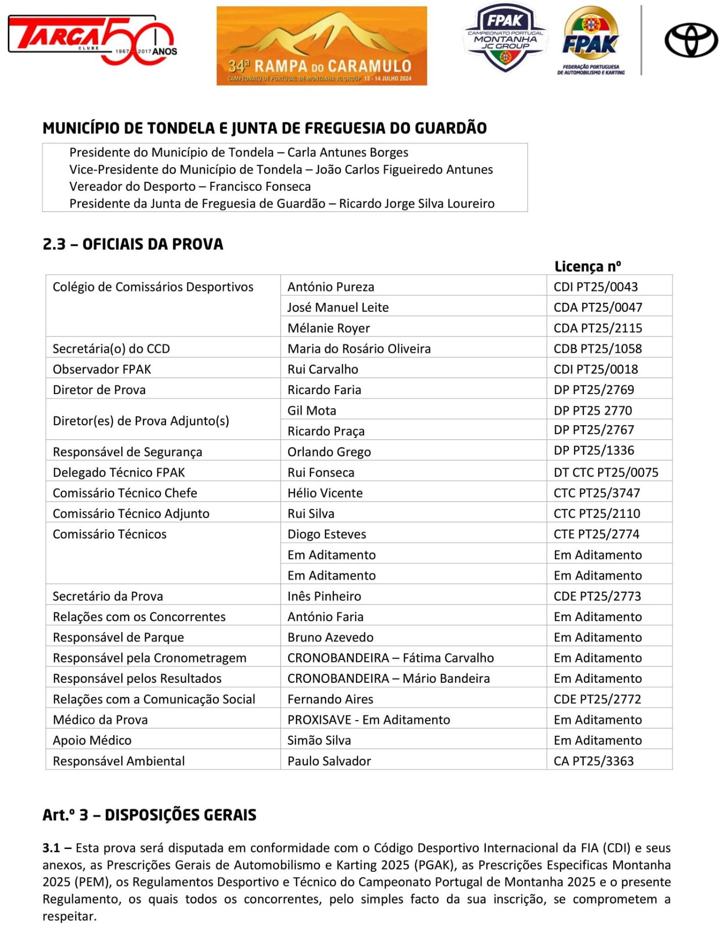 Lista de Inscritos +  Aditamento N.º 3 + Aditamento N.º 2 + Aditamento N.º 1 + Regulamento Particular