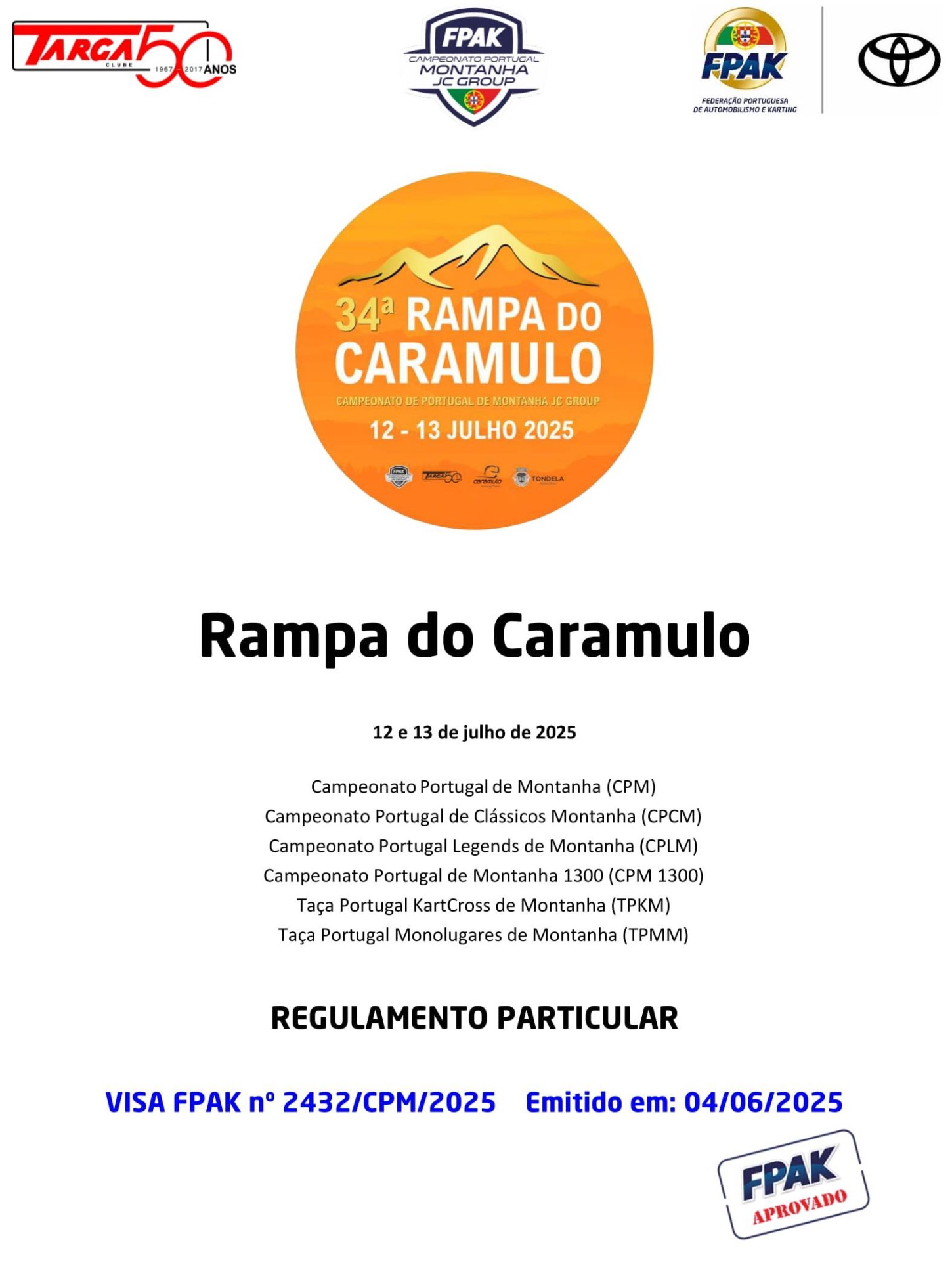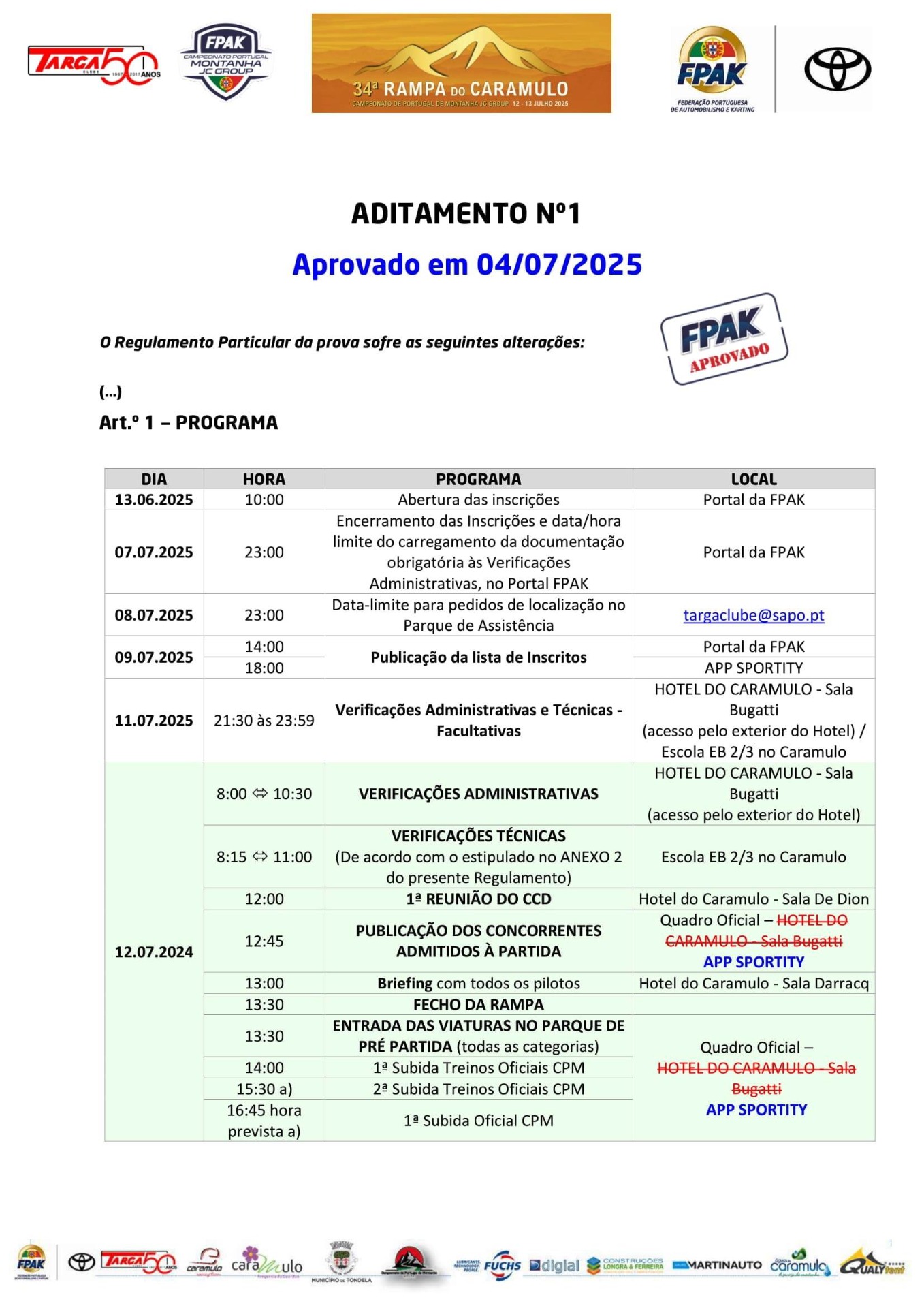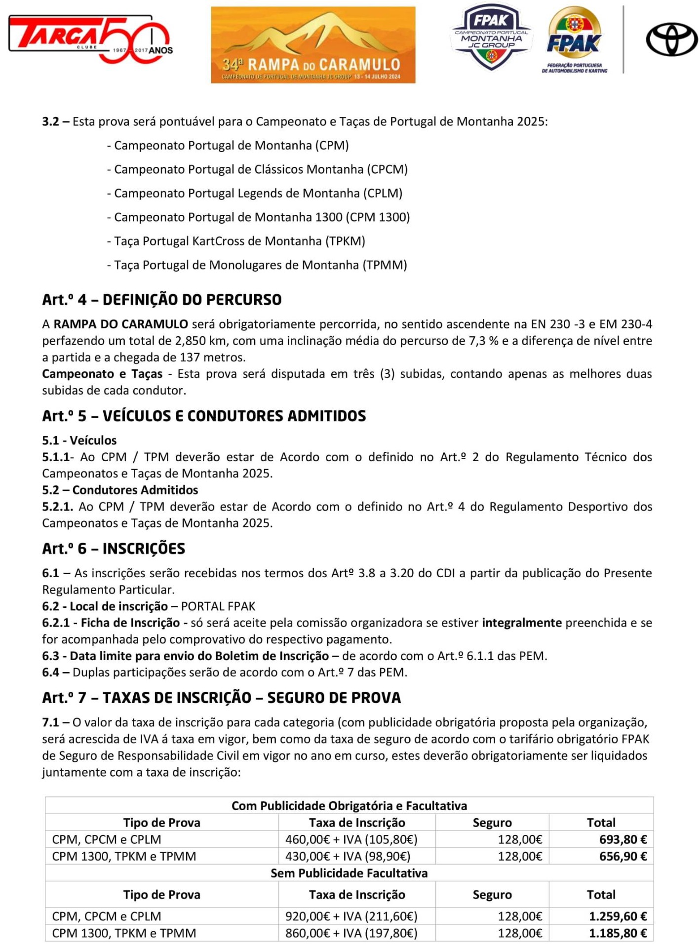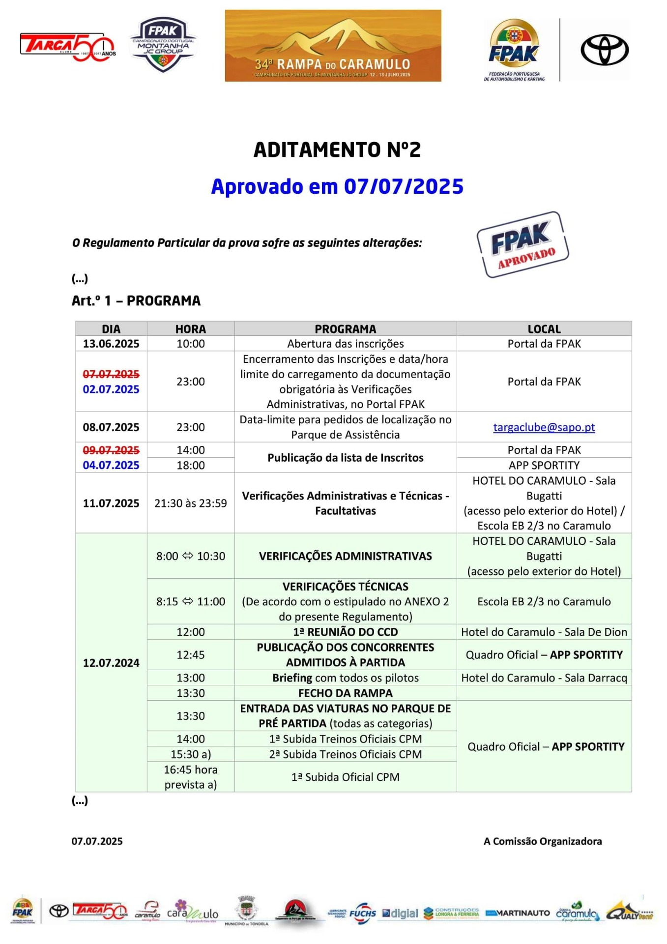 Lista de Inscritos +  Aditamento N.º 3 + Aditamento N.º 2 + Aditamento N.º 1 + Regulamento Particular