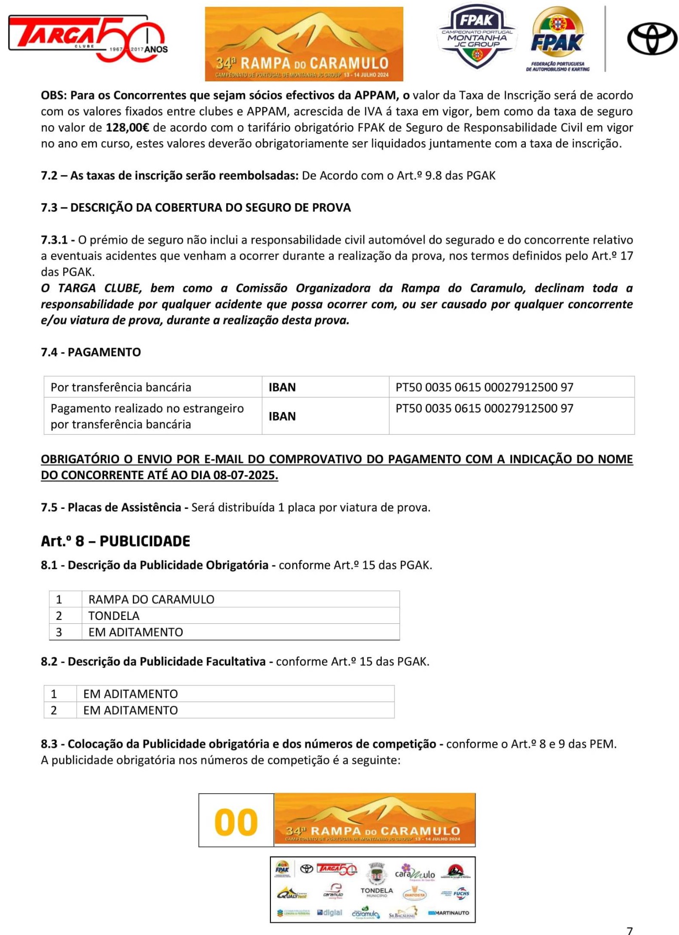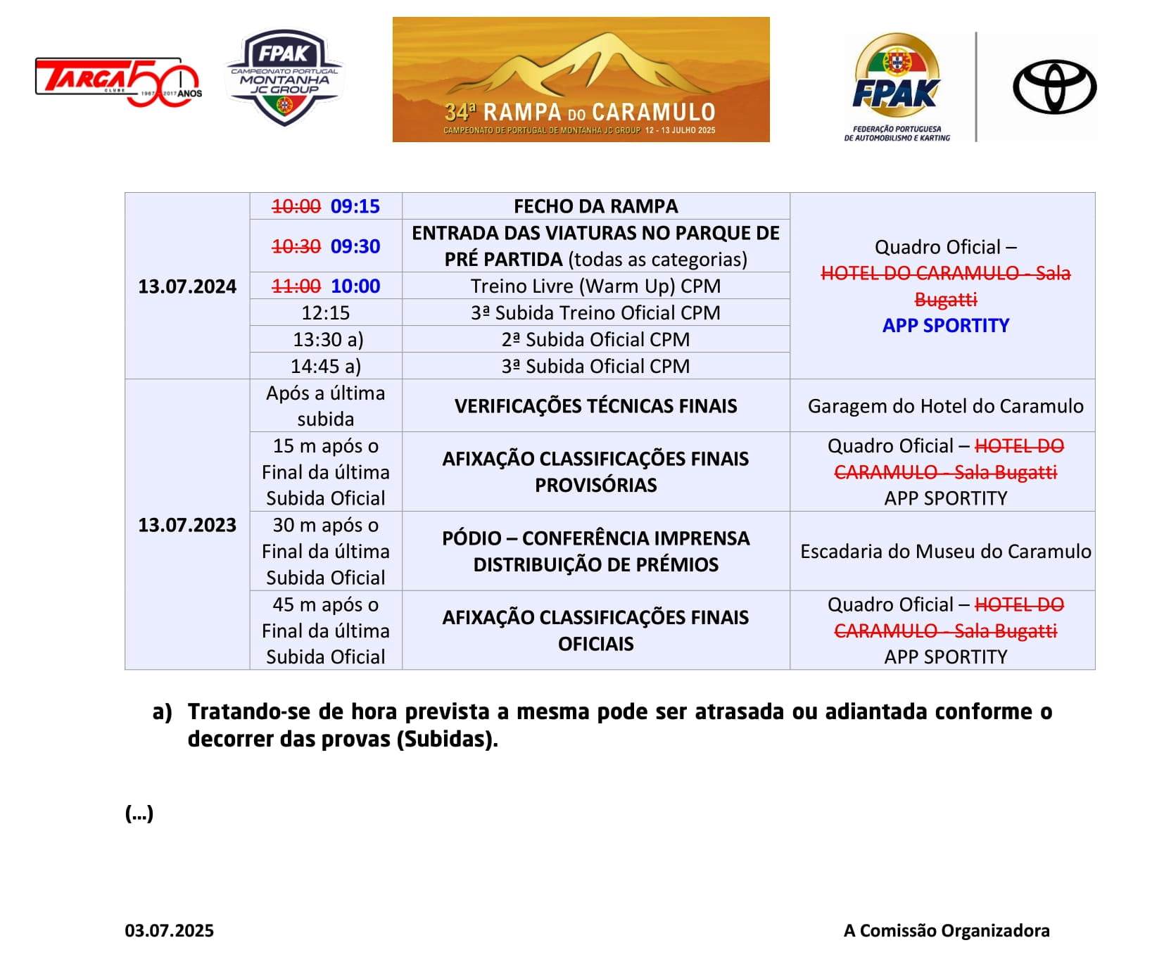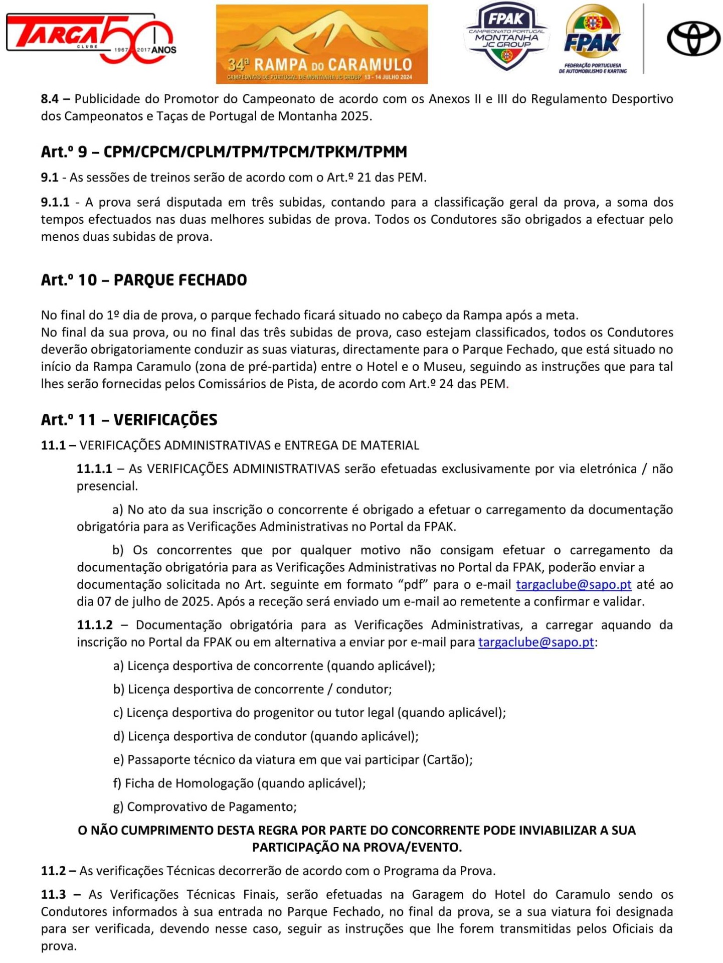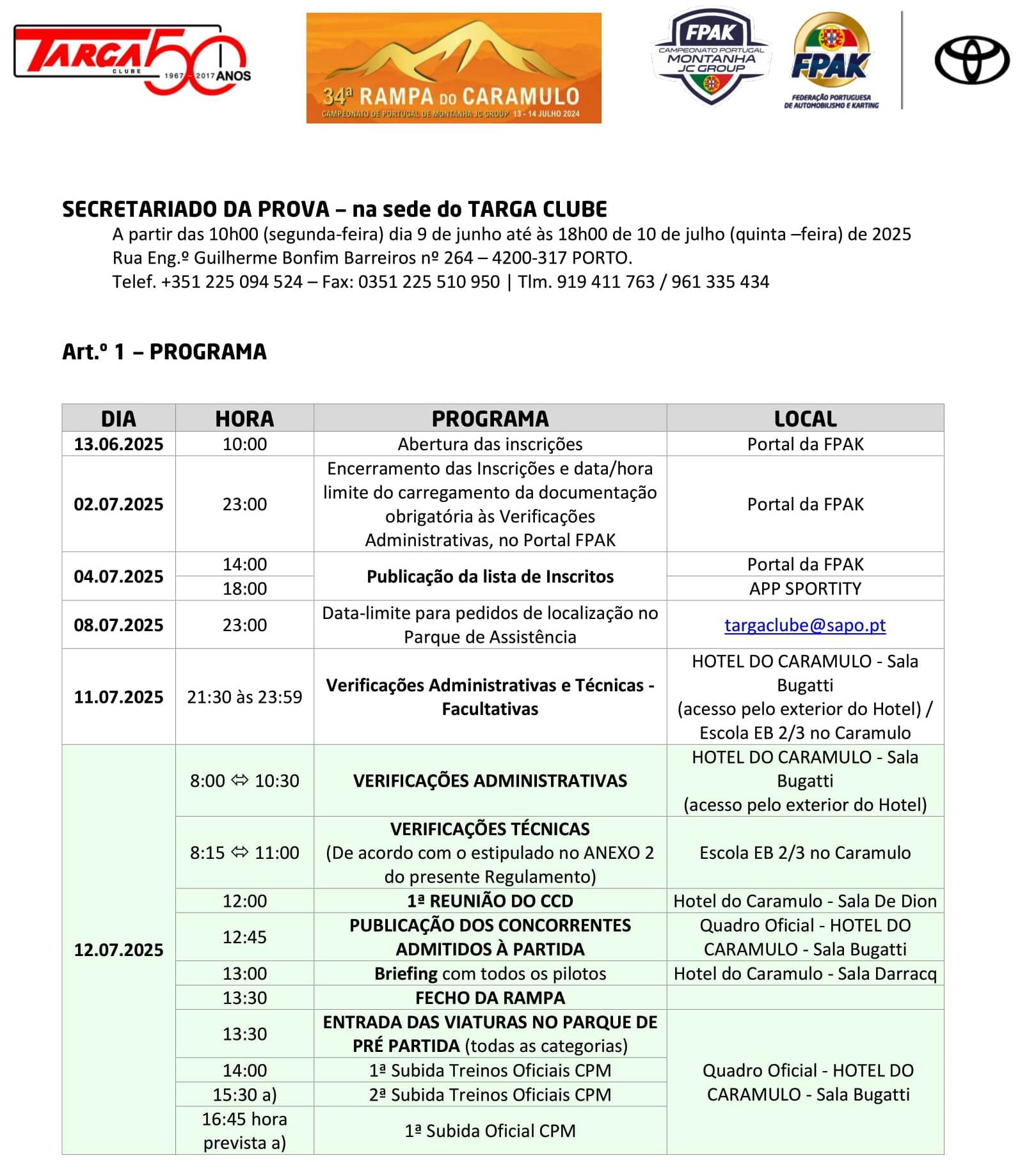 Lista de Inscritos +  Aditamento N.º 3 + Aditamento N.º 2 + Aditamento N.º 1 + Regulamento Particular